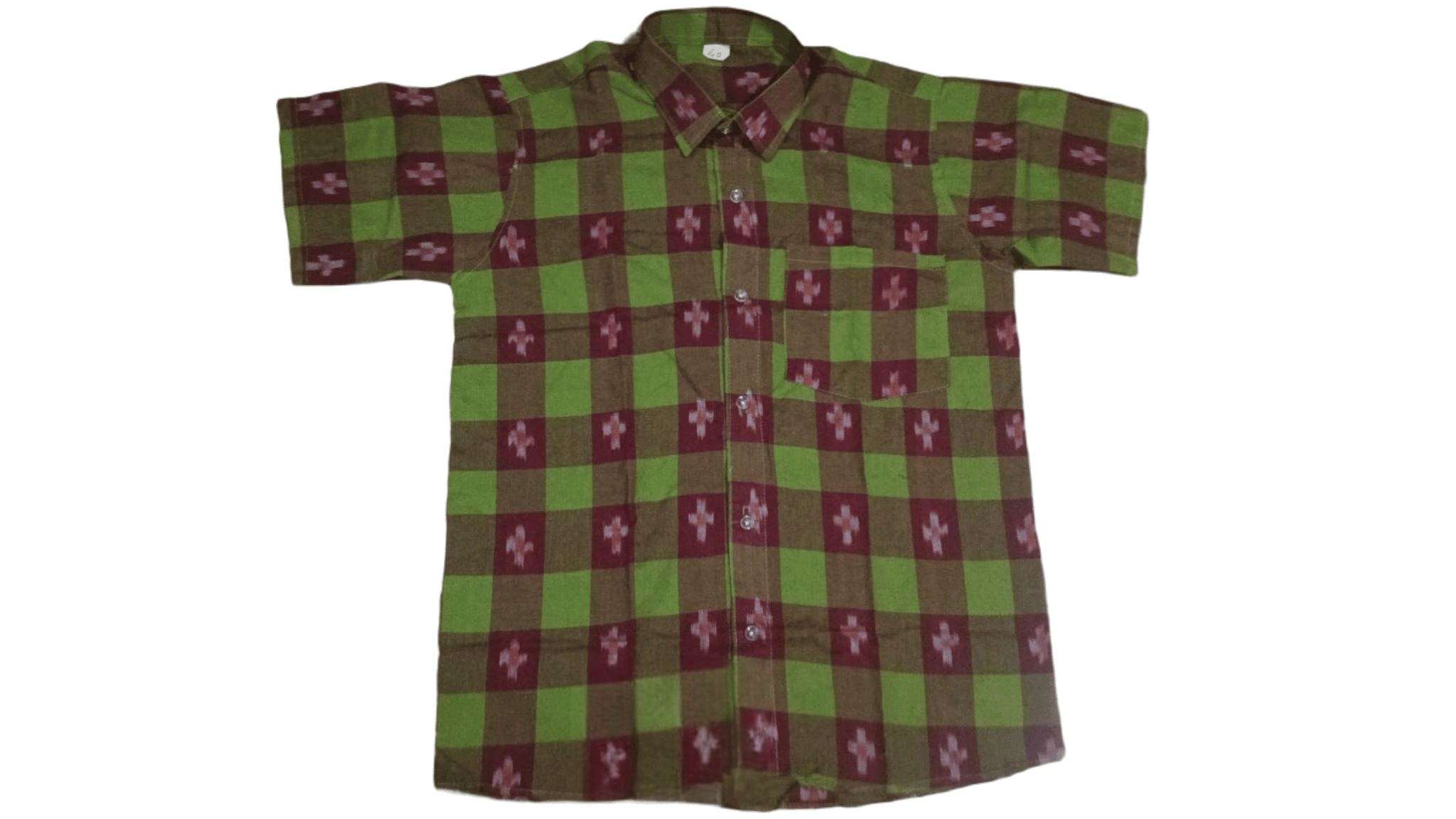 This is a Sambalpuri Shirt crafted from handloom-made cotton fabric. With a Green and Brown color pasapali design and half sleeves, this is elegant, light-weight, and will be perfect for all occasions day outings.