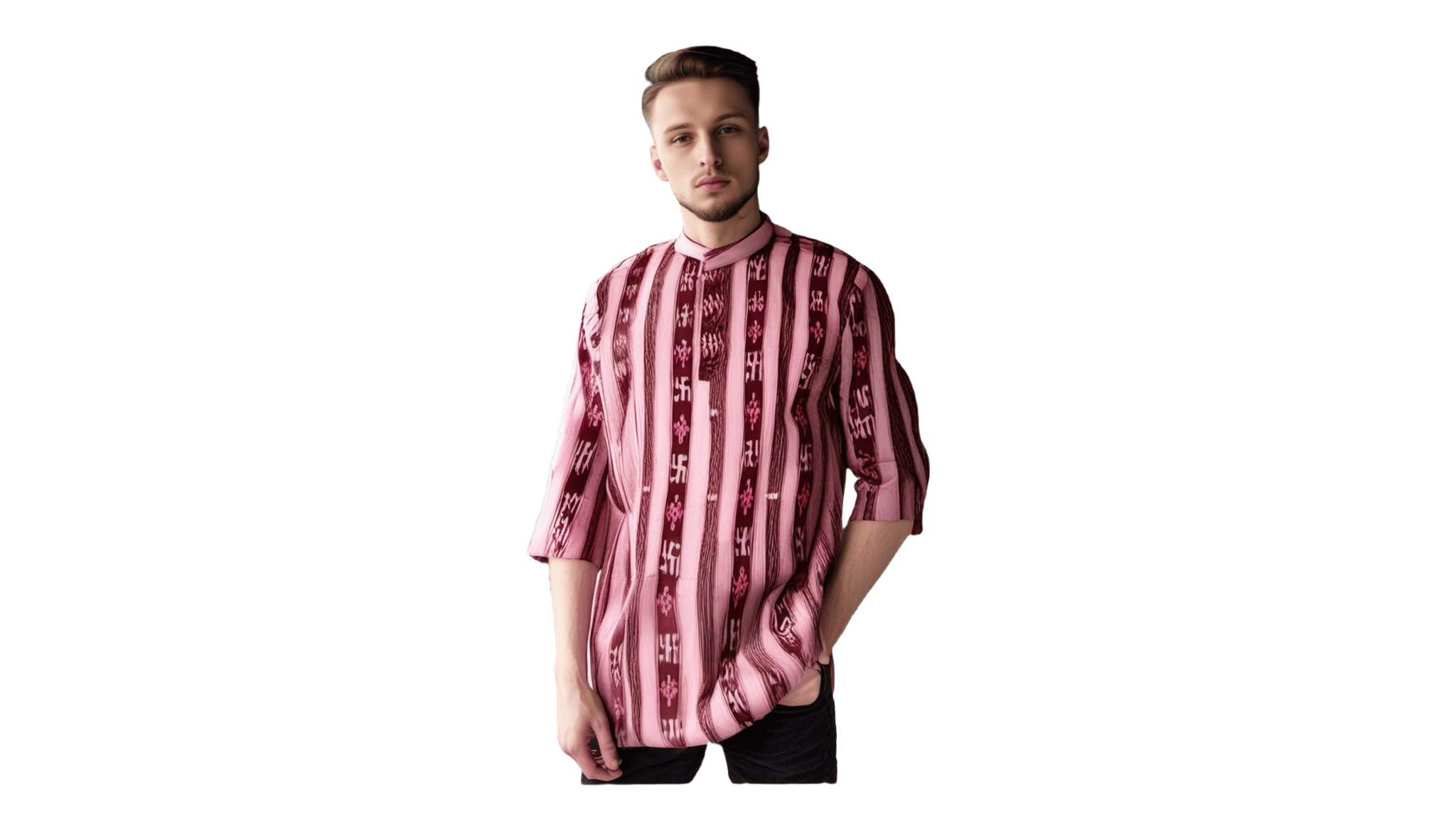 This is a Sambalpuri kurta crafted from handloom-made cotton fabric. With a Pink color swastik design and full sleeves, this is elegant, light-weight, and will be perfect for all occasions day outings.