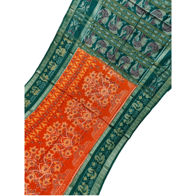 Sambalpuri Saree Orange Body and Green Border
